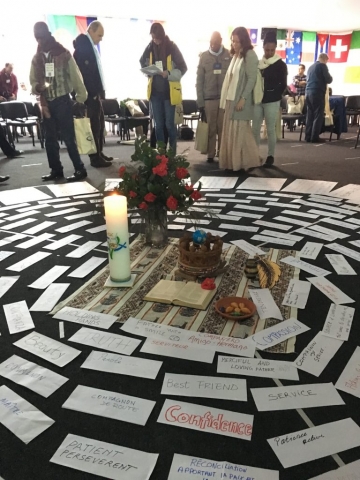 This morning, in continuation of our communal discernment as a World community, we prayed upon our awareness of our identity as CLC… If our Lord does indeed call us be name, what does our name mean… Christian Life Community? How do we embody our name… our identity? How do we honour it? Is it a name that gives us freedom, or restrains us? In light of what Austen Ivereigh (the biographer of Pope Francis, ‘the Great Reformer’), revealed to us about CLC during his talk to us… that it was a Christian community that that he had hardly heard about, even working in Catholic circles in Rome… many CLC members here at the Assembly came to see CLC as a united family striving to be rooted in the realities of their societies in apostolic ways, but in quiet ways. That though we are not well known in many church circles we are still authentic and present, if not flashy… that perhaps this is part of our identity… we are a modest, but still very active and committed presence within our church. The fruits of our morning prayers on our CLC identity were shared by all in our morning plenary within a circle in the midst of our presence, which you will see in the accompanying photo. Some thought provoking responses were questions of our very name… ‘Christian Life Community,’ which was felt to be too general and unspecific. There were some who felt it did not really reveal anything unique about who we were… a community of faith-filled people continually striving to discern God’s will in their lives towards apostolic orientation through the Ignatian charism. There were others who felt that rather than change our name, we needed to embody it more fully… that our identity was not solely attached to our name, but in how we incarnated Christ within it, as a community.