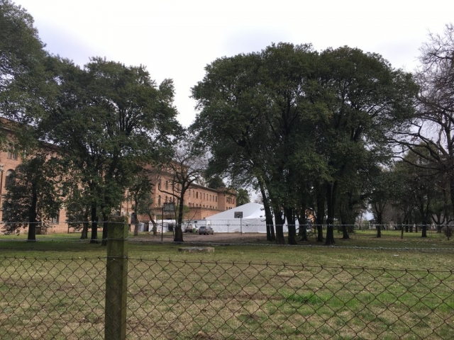 Attached as photos you will see our big Assembly tent from the outside, as well as the Marian pond in which we offered all of our gifts this evening (too dark to take a photo of that).